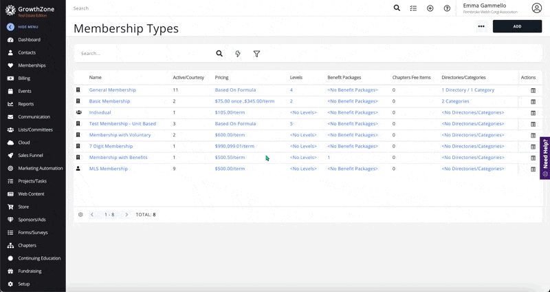 - The membership level appears in the format: Type Name – Level for quick and clear identification.