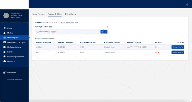 - New delete icon: Members can now easily delete a saved payment profile using the new trash can icon next to the edit (pencil) icon.