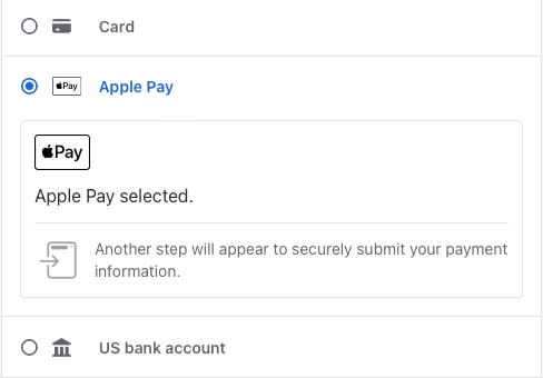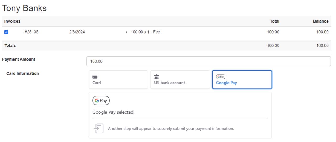 *** Apple Pay, Google Pay, or Stripe Link in GrowthZone are not allowed as saved payment methods. Users will not be able to save these methods in the Info Hub or use them for autopay.
