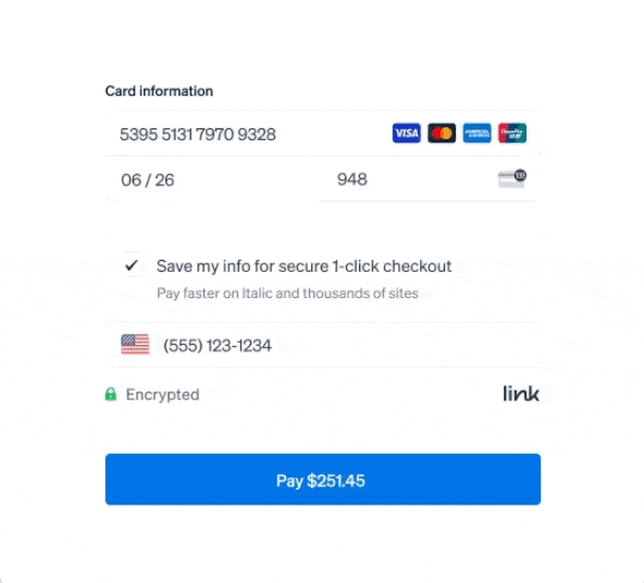 Stripe Link is a secure, one-click way to pay. Supported by hundreds of thousands of businesses and eCommerce platforms, Link allows users to access saved methods stored within Stripe. Users will be able to access all of their saved payment methods from other platforms quickly and securely with one click.