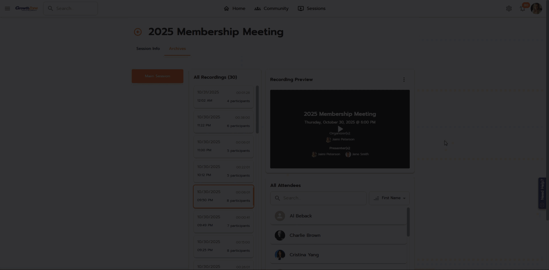 - See which participants were in attendance for each recording.