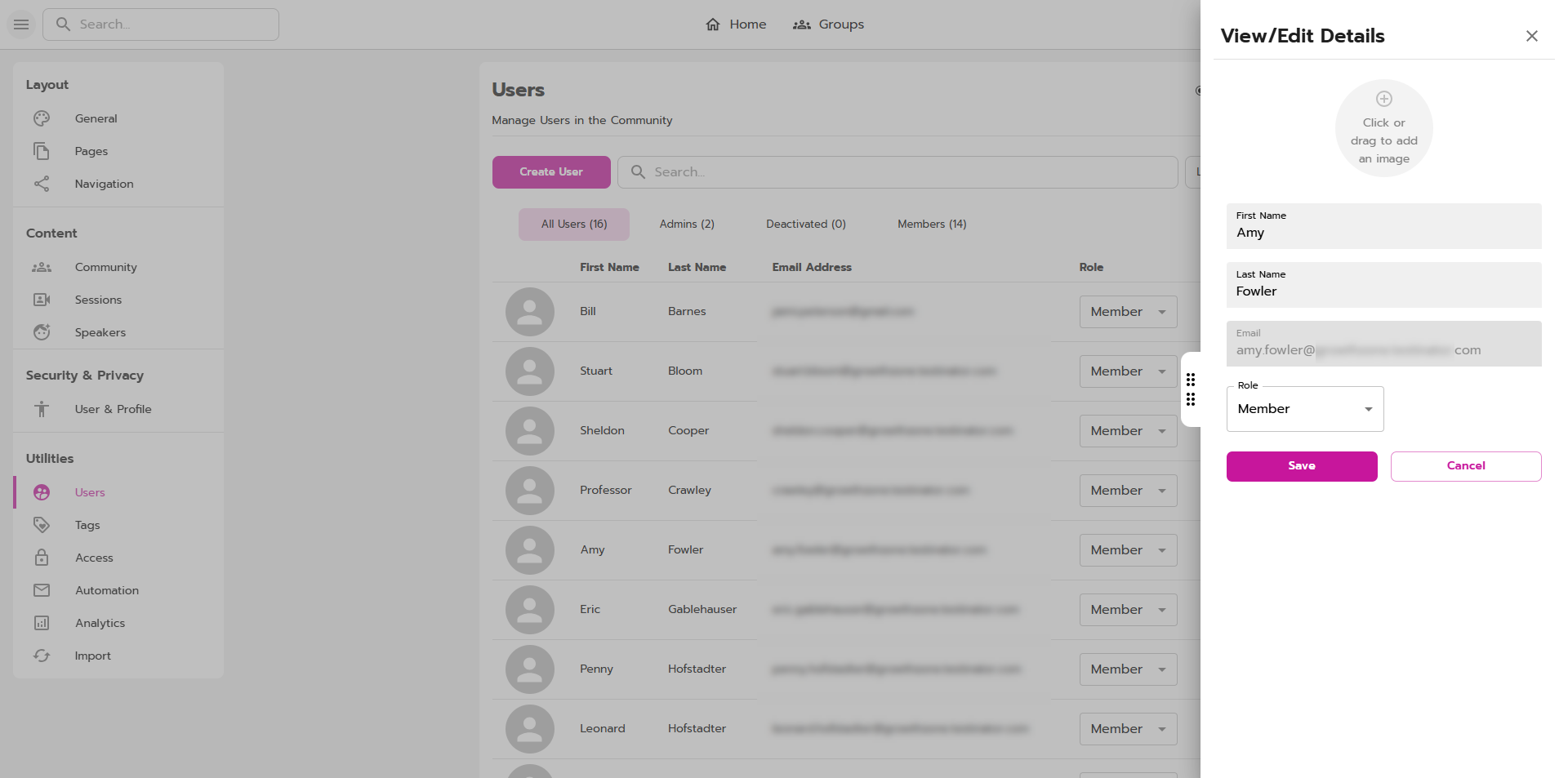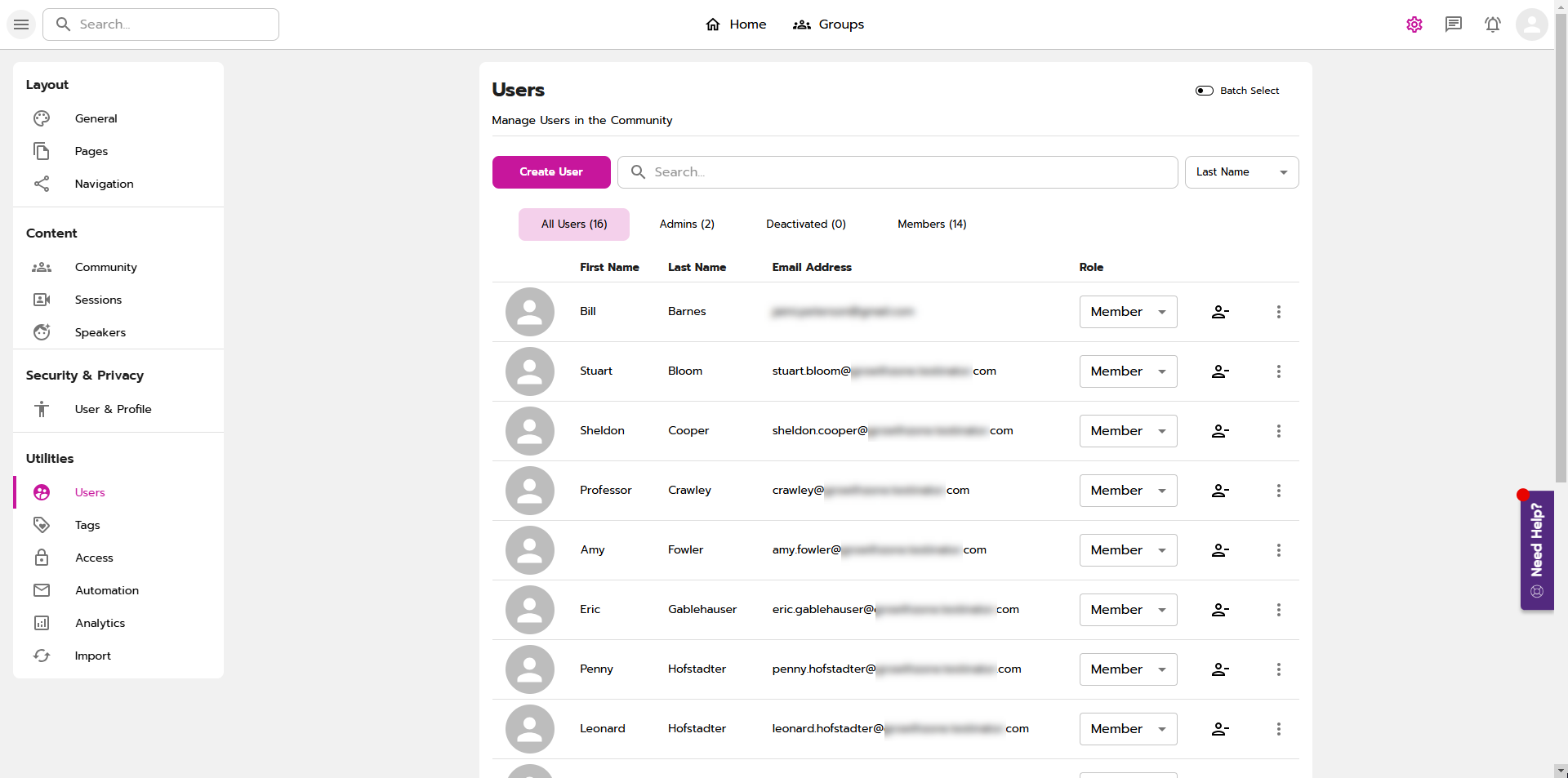 Association/chamber staff members who have site level admin permissions within Community now have an updated user dashboard area to manage users.