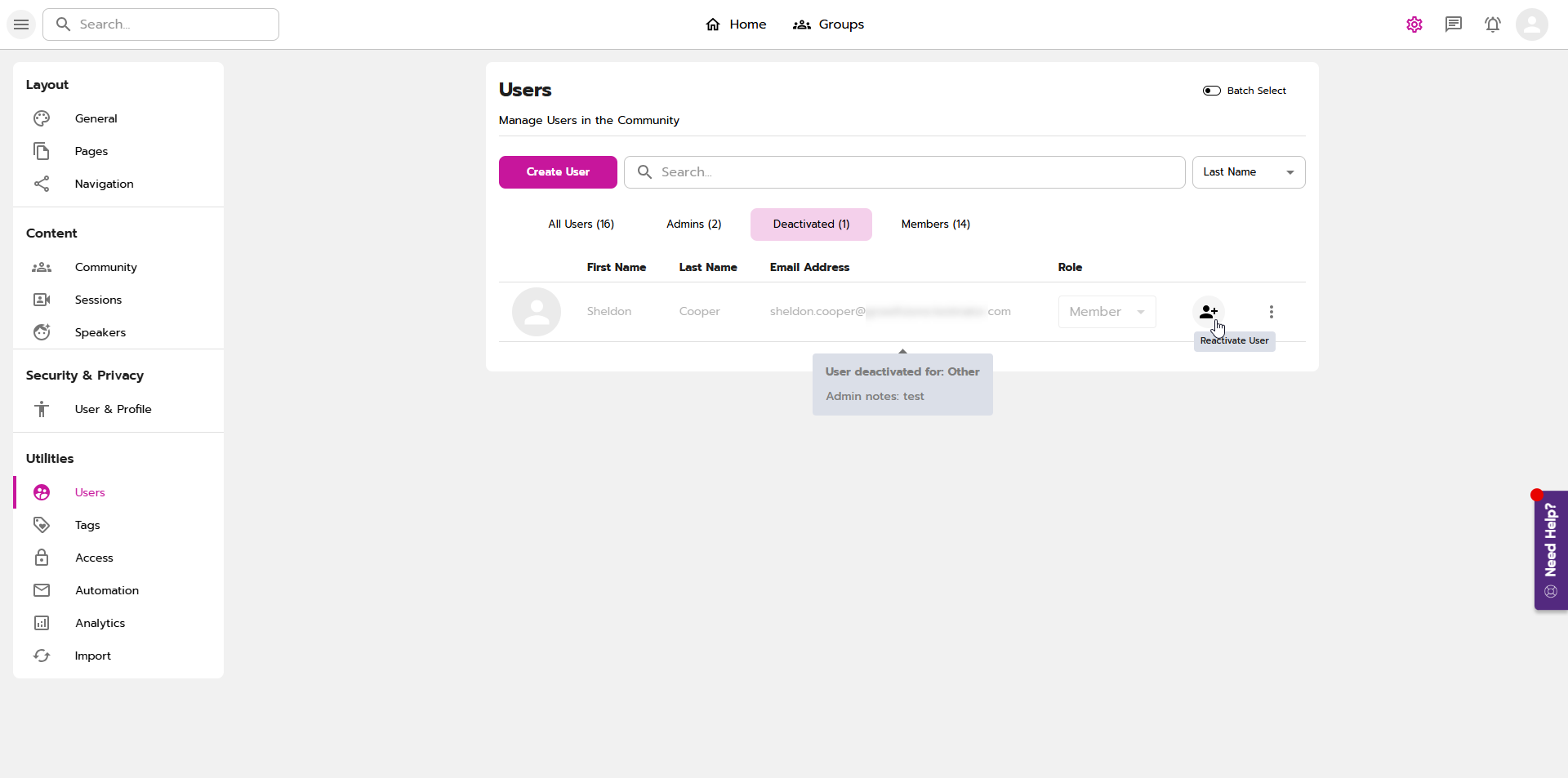 Association/chamber staff members who have site level admin permissions within Community are now able to deactivate users on the Community Platform.