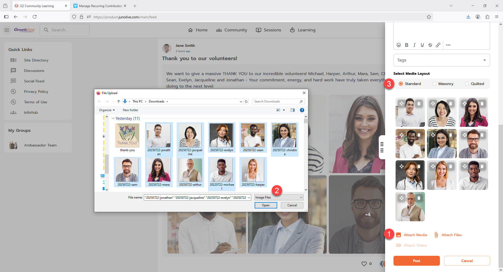 Posts within Discussions and Social Feed now allow multiple image uploads, removing the previous limitation of just one. This change offers greater flexibility when sharing content on the Community Platform.