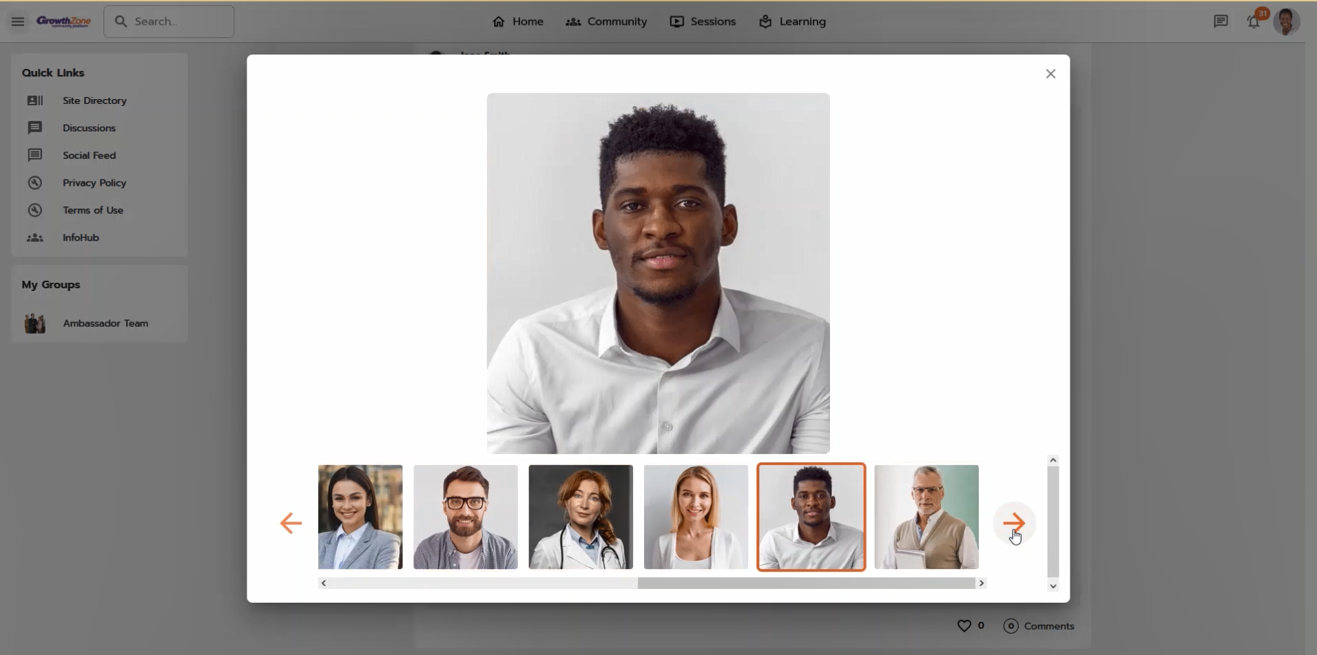 - Clicking on any of the images will open the pop-up image viewer allowing Community members to view the image at a larger size as well as scroll through all images within the post.